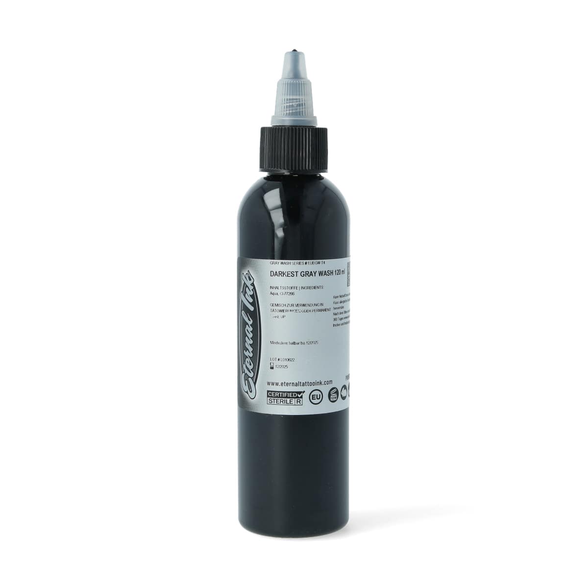 Eternal Ink - Darkest Gray Wash - 120 ml - Tattoofarben von Eternal Ink mit hochwertigen Pigmenten und veganer Formel. Keine schädliche Chemie oder Tierversuche. Klassische Graywash-Farben für Black & Grey Tattoos.