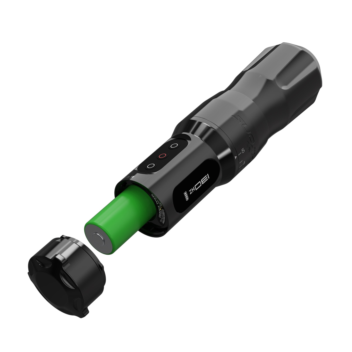 Mit ihrem ergonomischen Griff bleibt sie selbst bei langen Tätowiersessions angenehm kontrollierbar. Zwei wiederaufladbare Panasonic-Akkus und austauschbare Caps sorgen für maximale Flexibilität im Studioalltag, während Laufzeiten von bis zu 6,5 Stunden zuverlässiges Arbeiten ermöglichen.