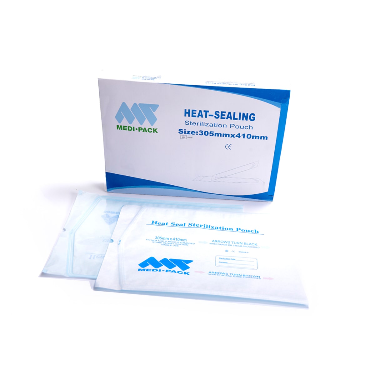 Sterilization bag with tube seam, steam and gas indicator, optimal peel closure, clear film for quick identification, practical removal boxes, VPE 200 pcs, tattoo hygiene