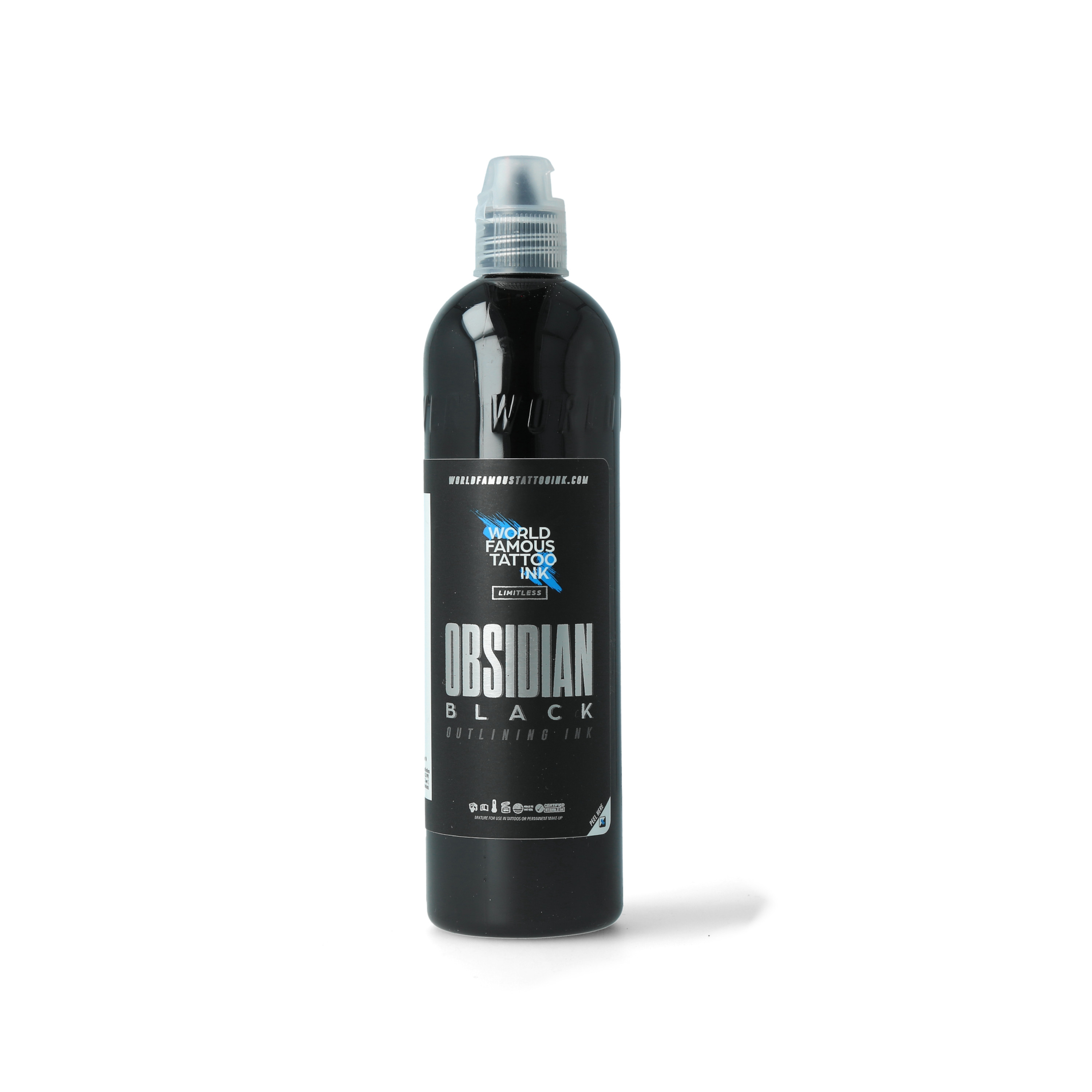 The World Famous Limitless - Obsidian Outlining - 118 ml - World Famous Tattoo Ink - Series Limitless offers precise, black lines for your tattoo art. Developed without animal testing and vegan.
